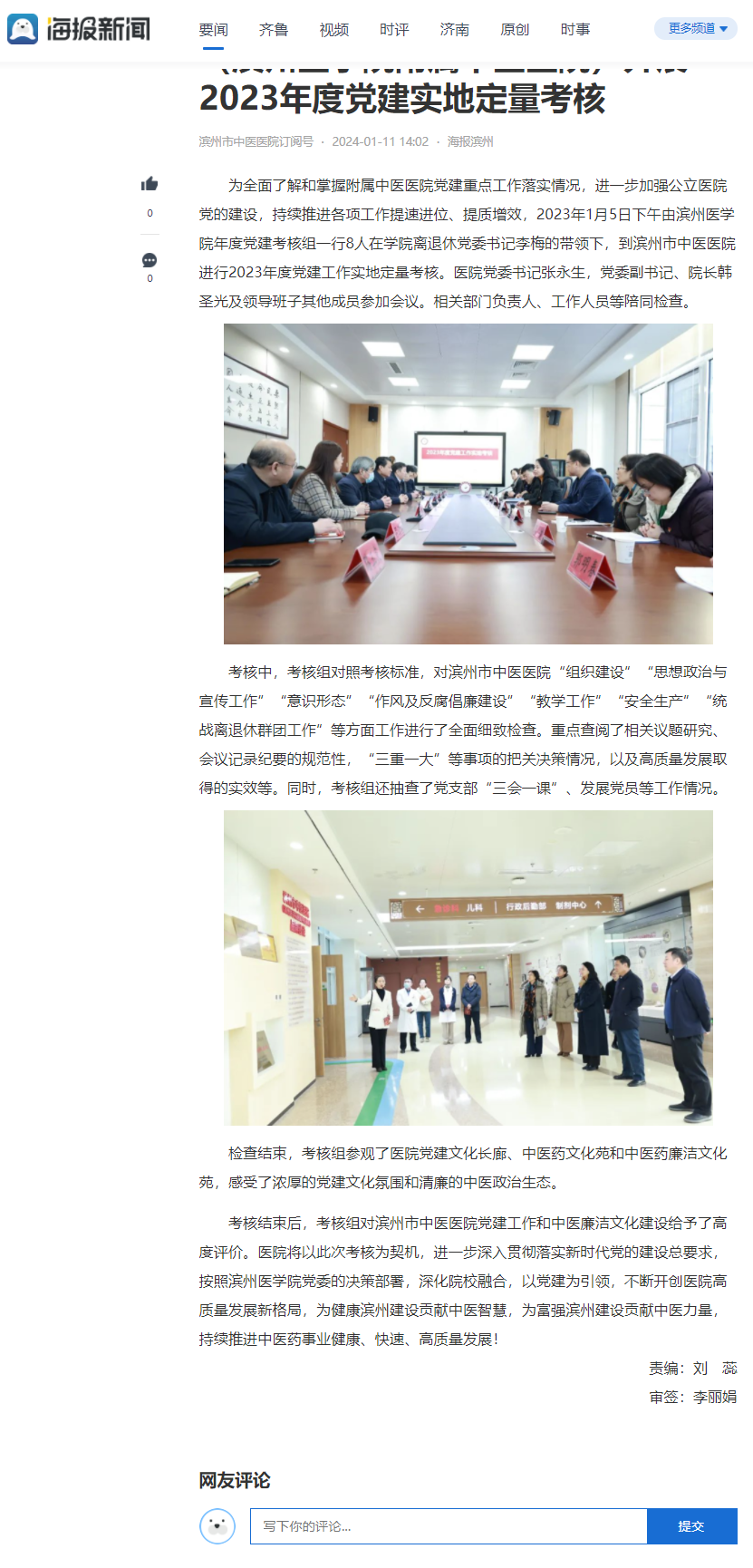 【海报新闻】滨州医学院党委对滨州市中医医院(滨州医学院附属中医医院)开展2023年度党建实地定量考核