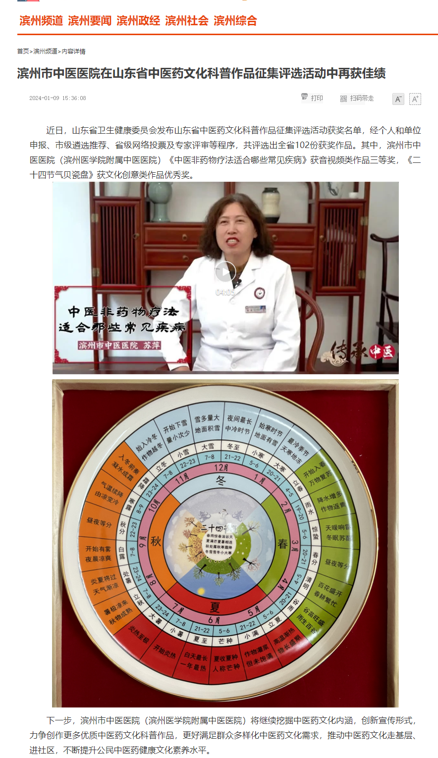 【速豹新闻网】滨州市中医医院在山东省中医药文化科普作品征集评选活动中再获佳绩