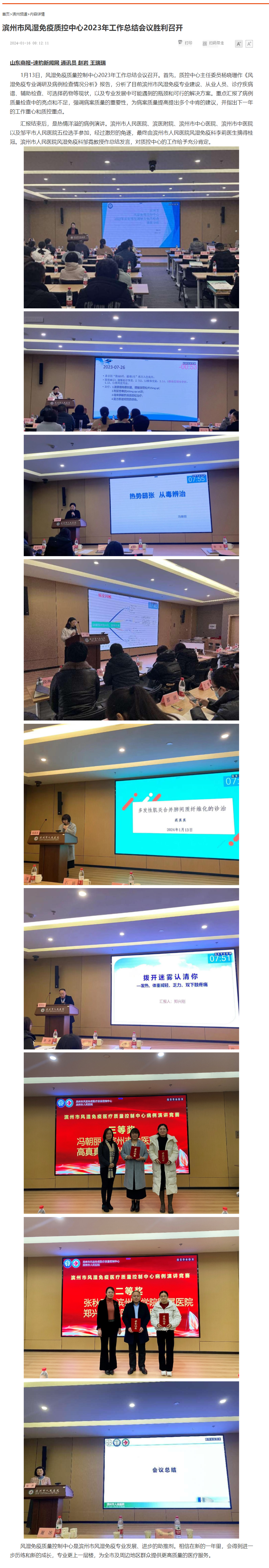 【速豹新闻网】滨州市风湿免疫质控中心2023年工作总结会议胜利召开