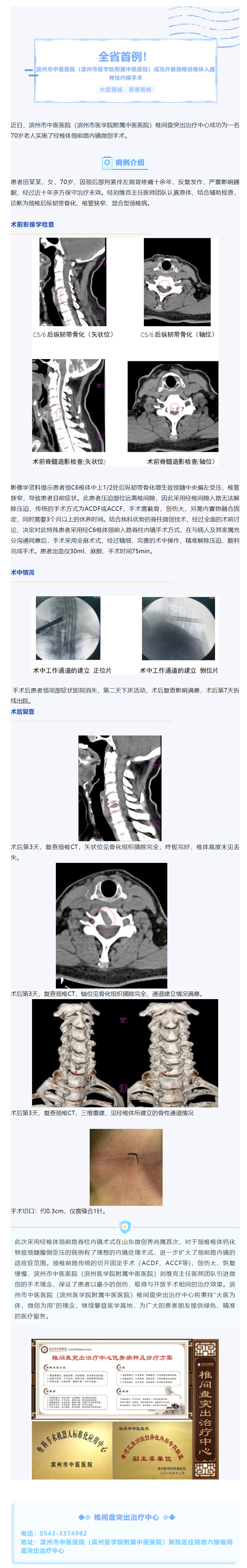 全省首例!滨州市中医医院(滨州市医学院附属中医医院)成功开展颈椎经椎体入路脊柱内镜手术