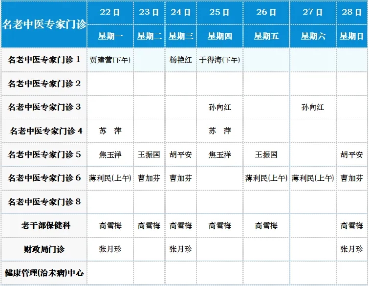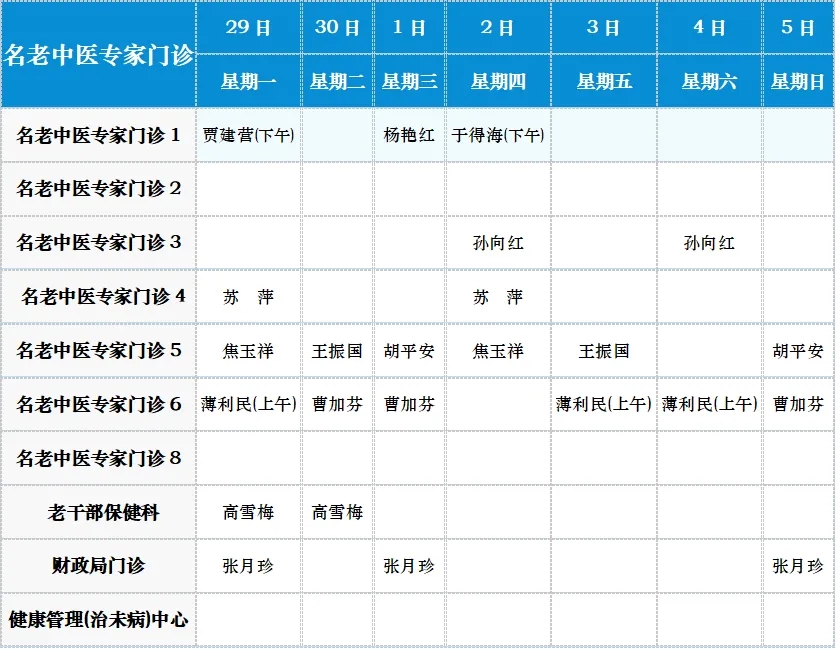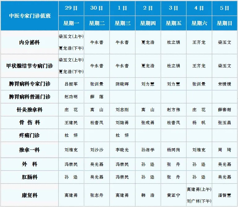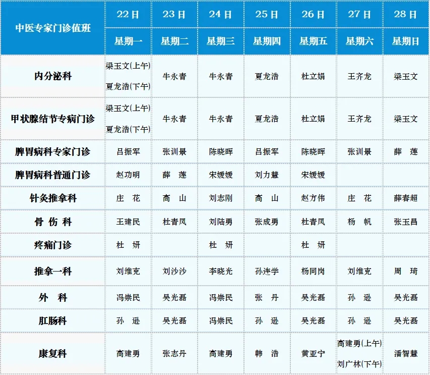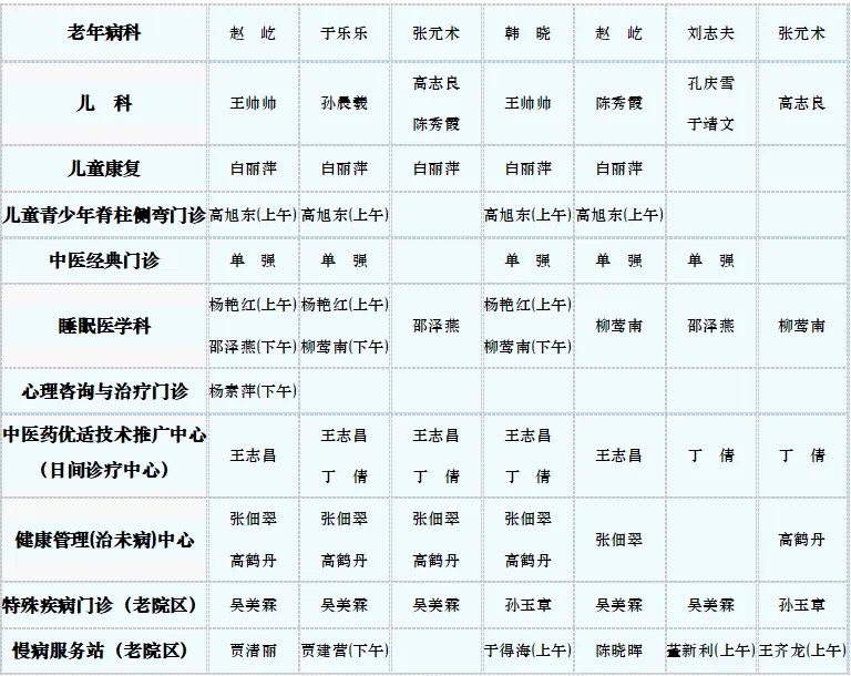 中医专家门诊值班表