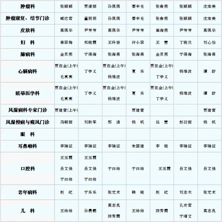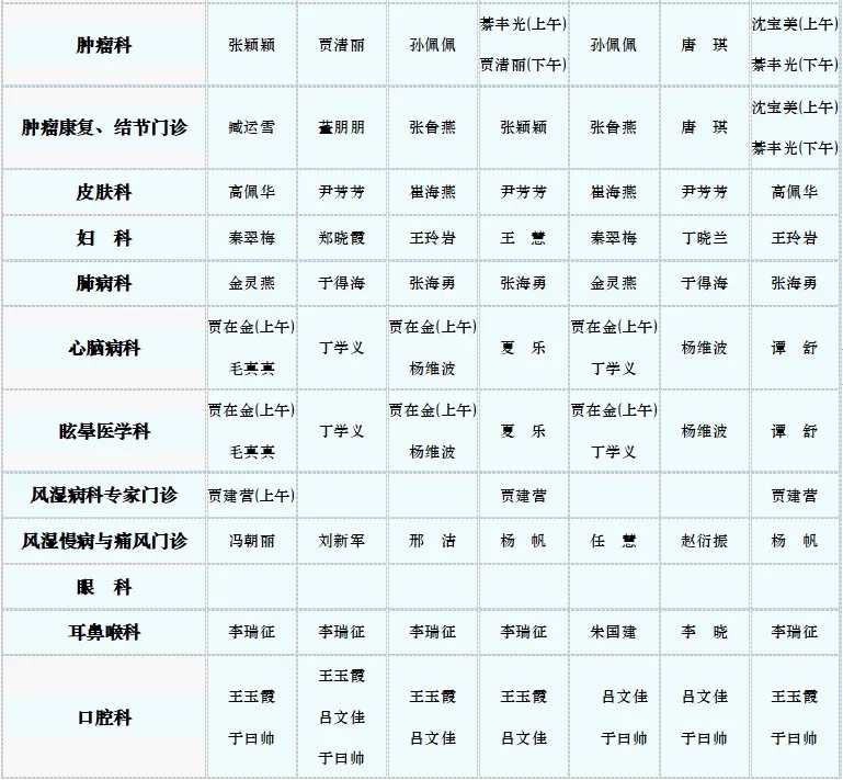 专家门诊值班表