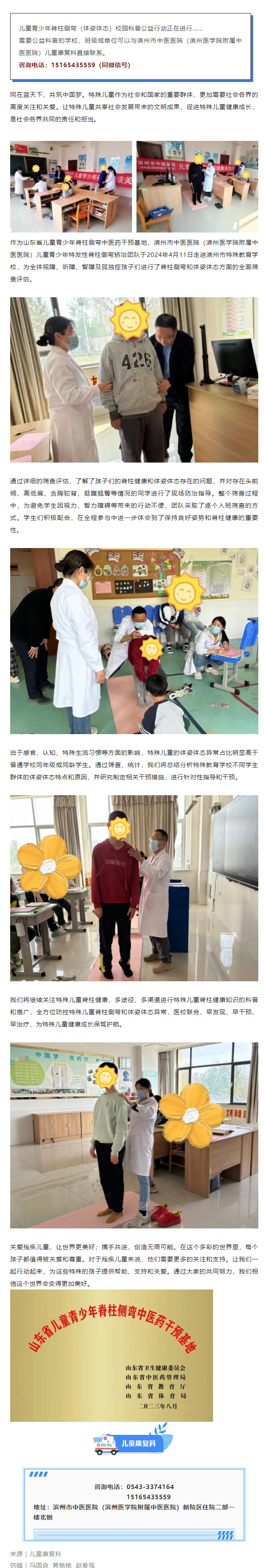 关注特殊儿童脊柱健康——滨州市中医医院(滨州医学院附属中医医院)儿童康复科为滨州市特殊教育学校全体学生进行脊柱侧弯公益筛查