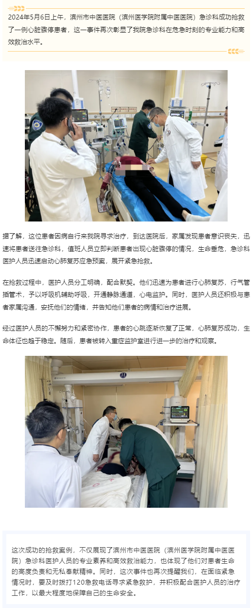滨州市中医医院(滨州医学院附属中医医院)急诊科成功抢救一例心脏骤停患者