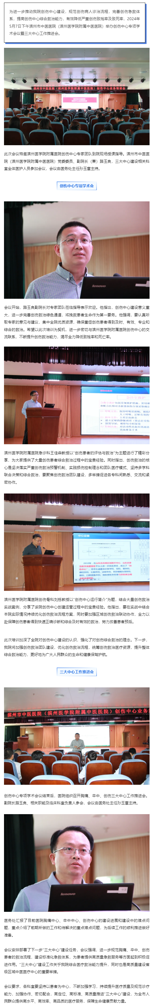 推进创伤中心建设,提升区域救治能力——滨州市中医医院(滨州医学院附属中医医院)成功举办创伤中心专项学术会议暨三大中心工作推进会