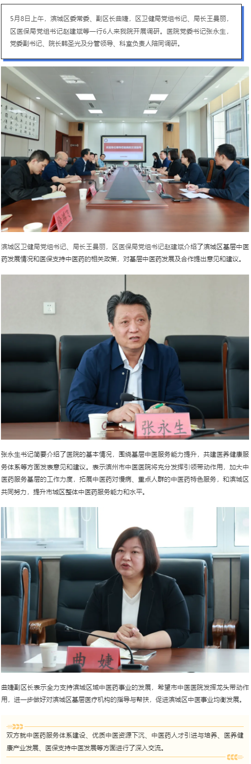 滨城区委常委、副区长曲婕来我院调研