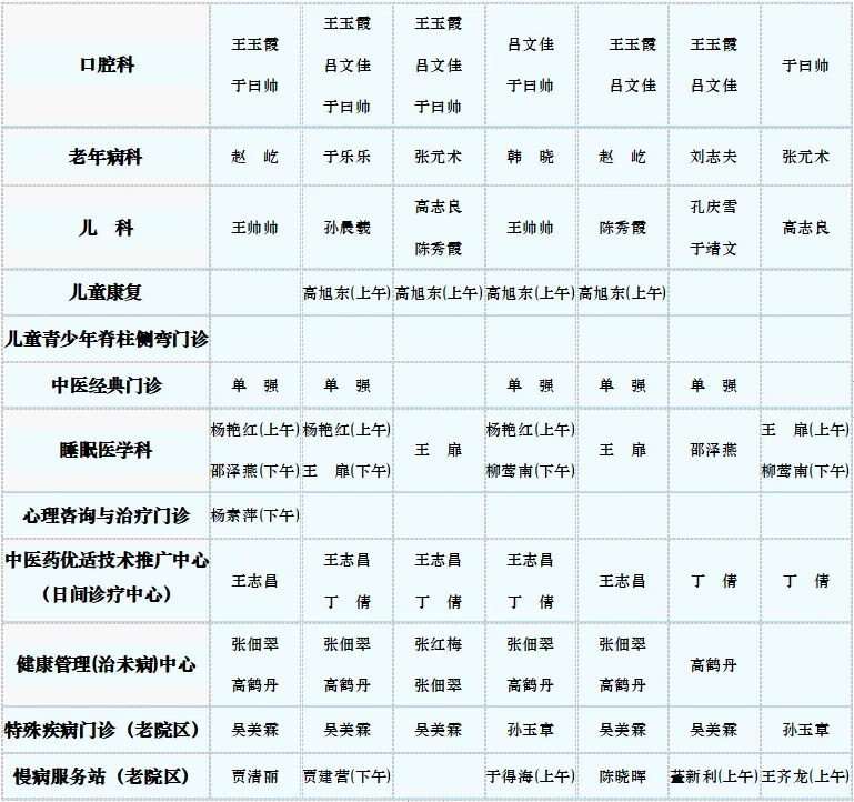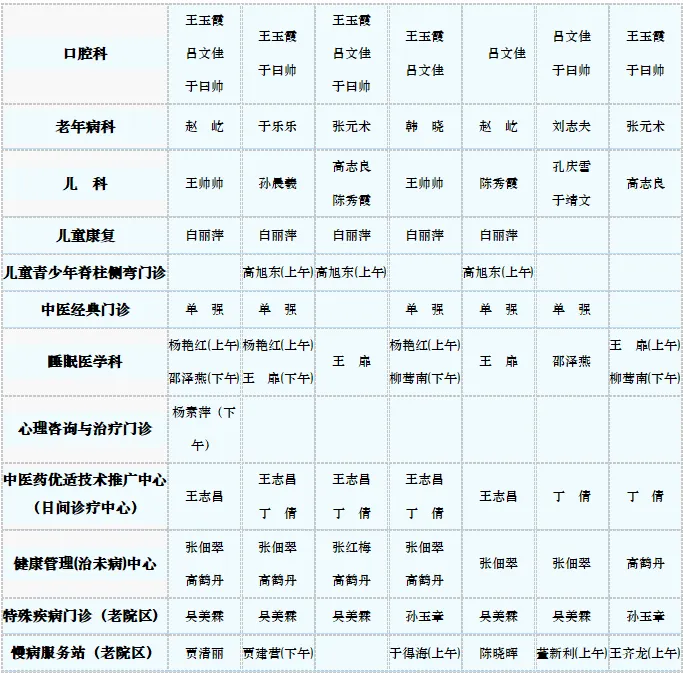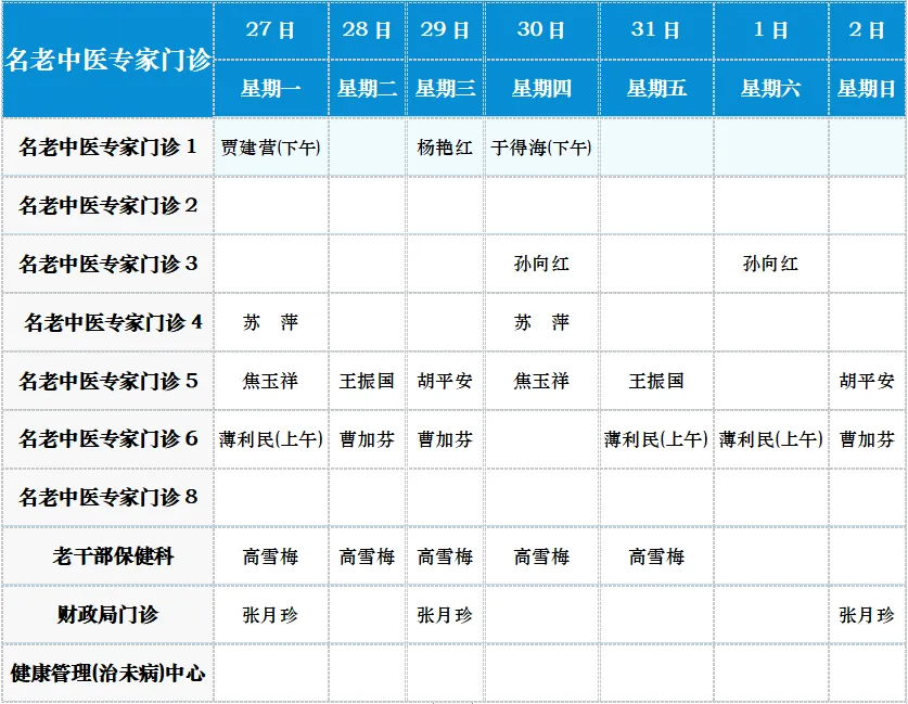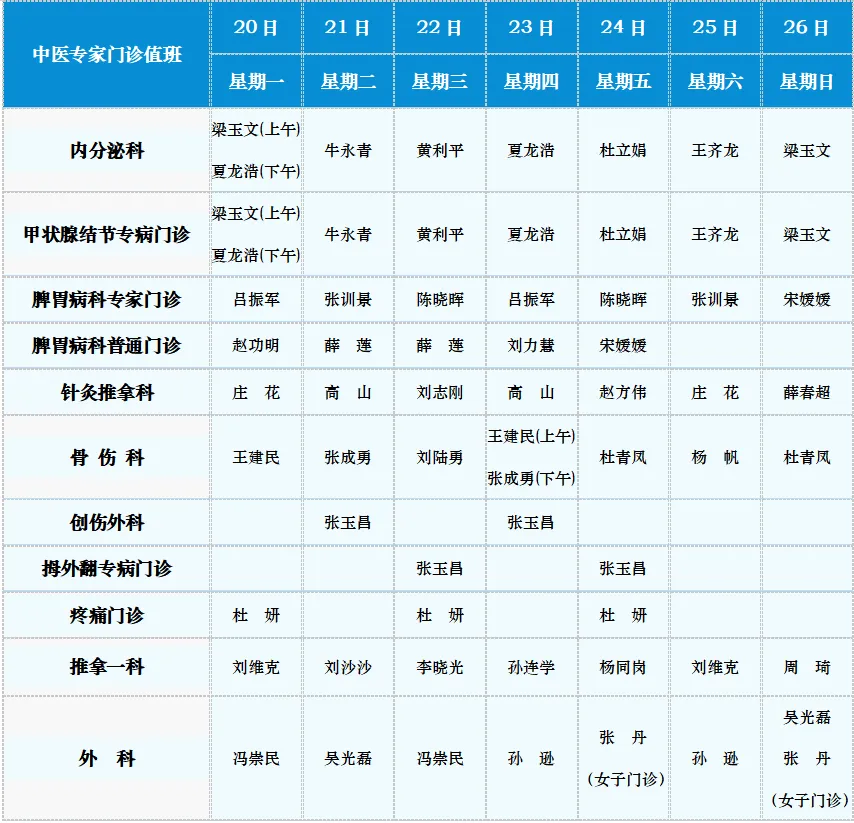 中医专家门诊值班表