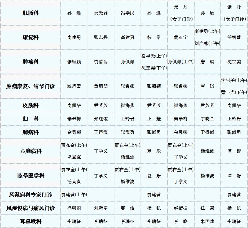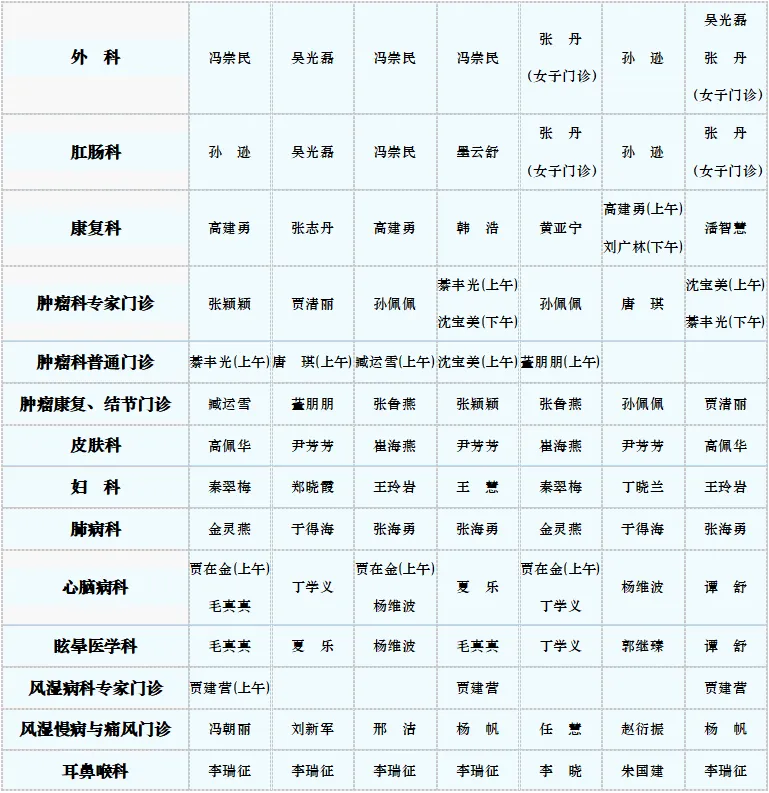 专家门诊值班表