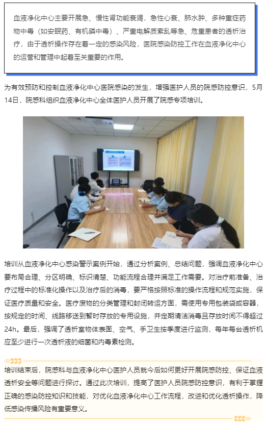 院感专项培训 | 院感科开展血液净化中心医院感染防控专项培训