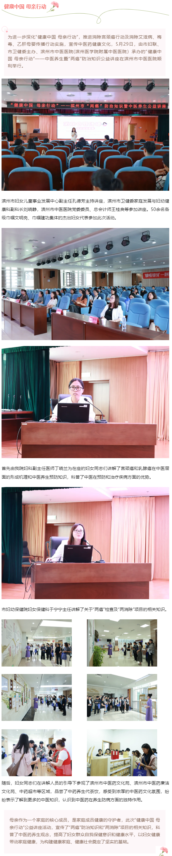 “健康中国 母亲行动”中医养生暨“两癌”防治知识公益讲座在滨州市中医医院顺利举行