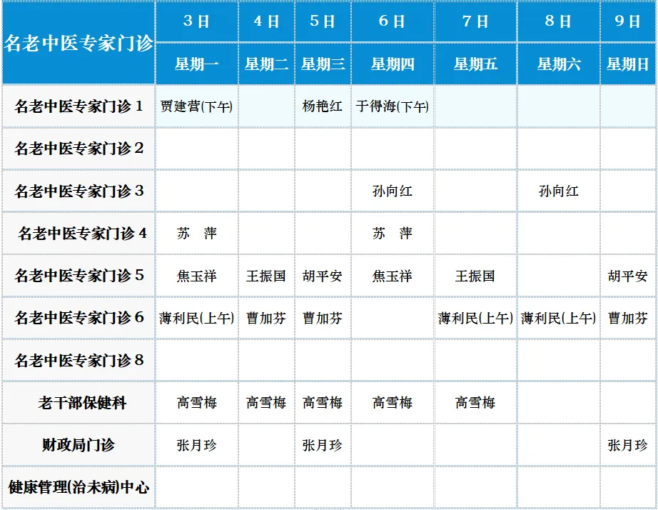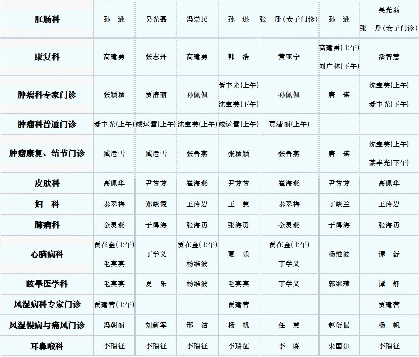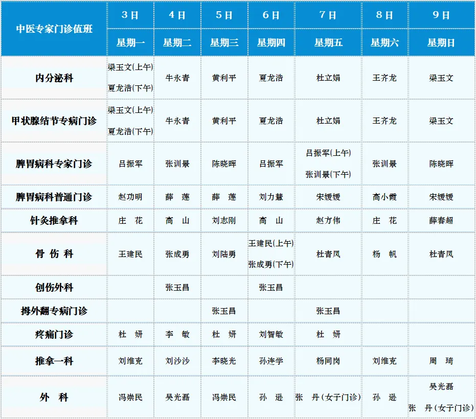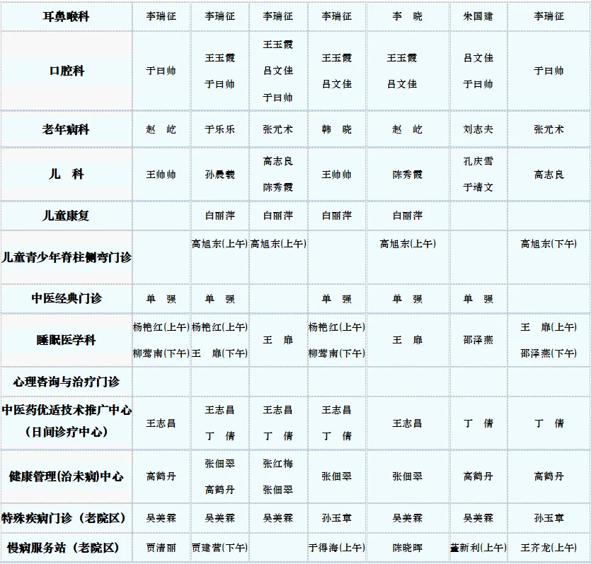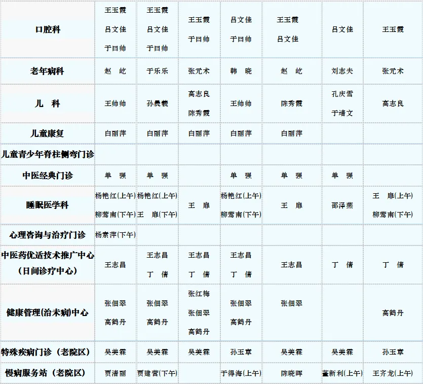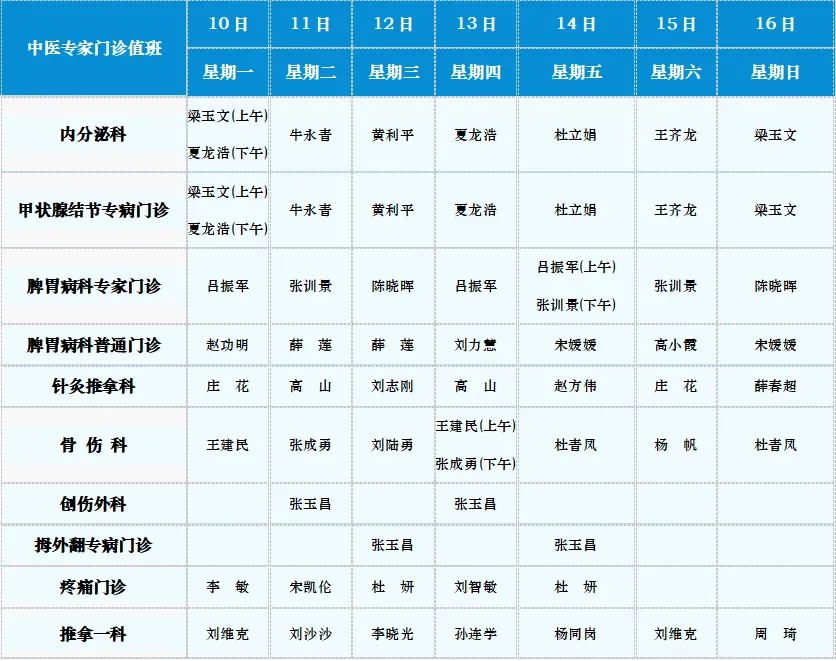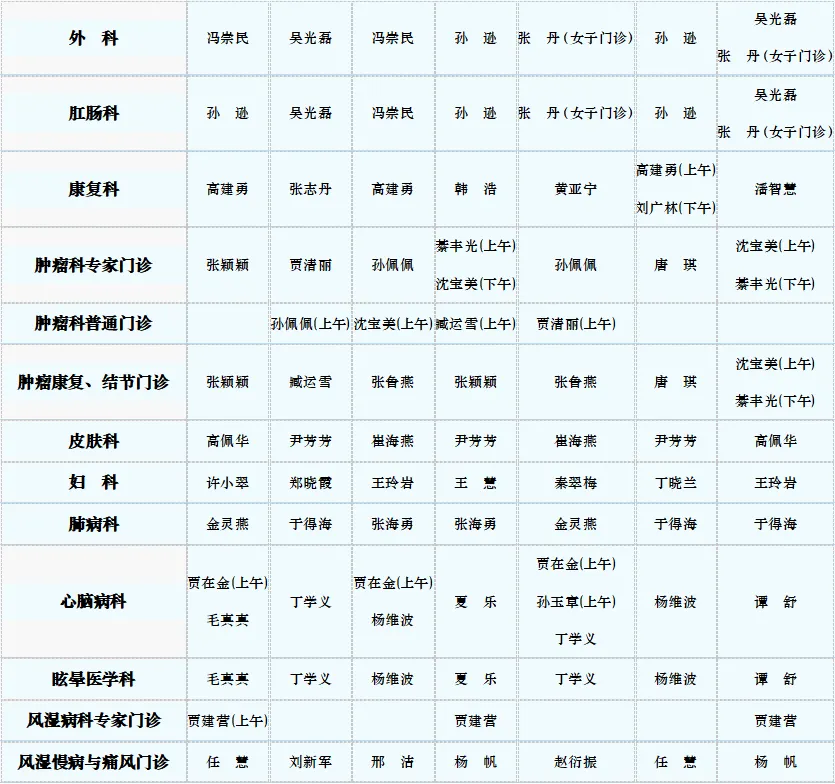 滨州市中医医院(滨州医学院附属中医医院)2024年6月3日-6月16日门诊值班表