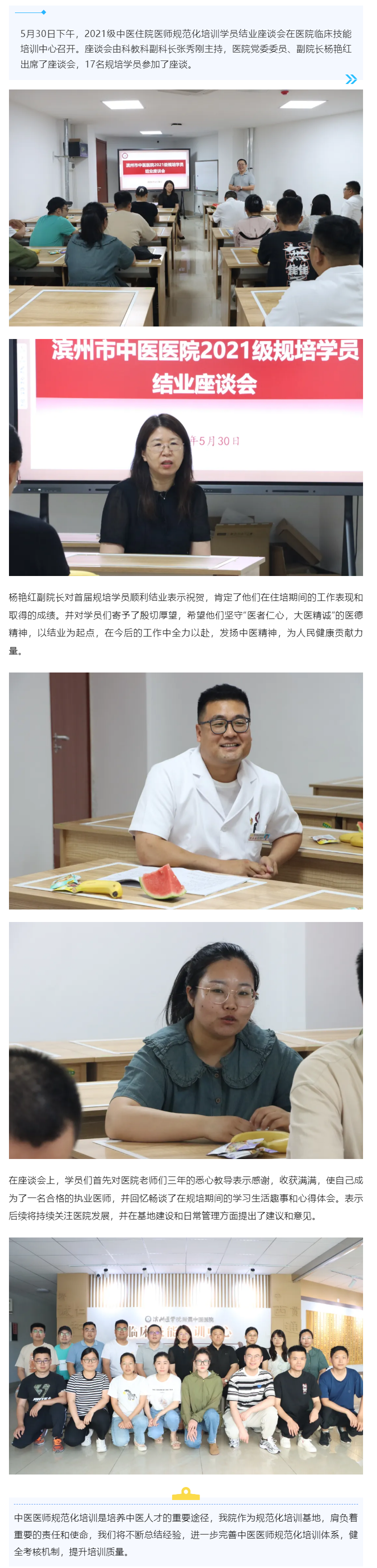 三载奋斗方得果,不忘初心赴前程——滨州市中医医院召开2021级规培学员结业座谈会