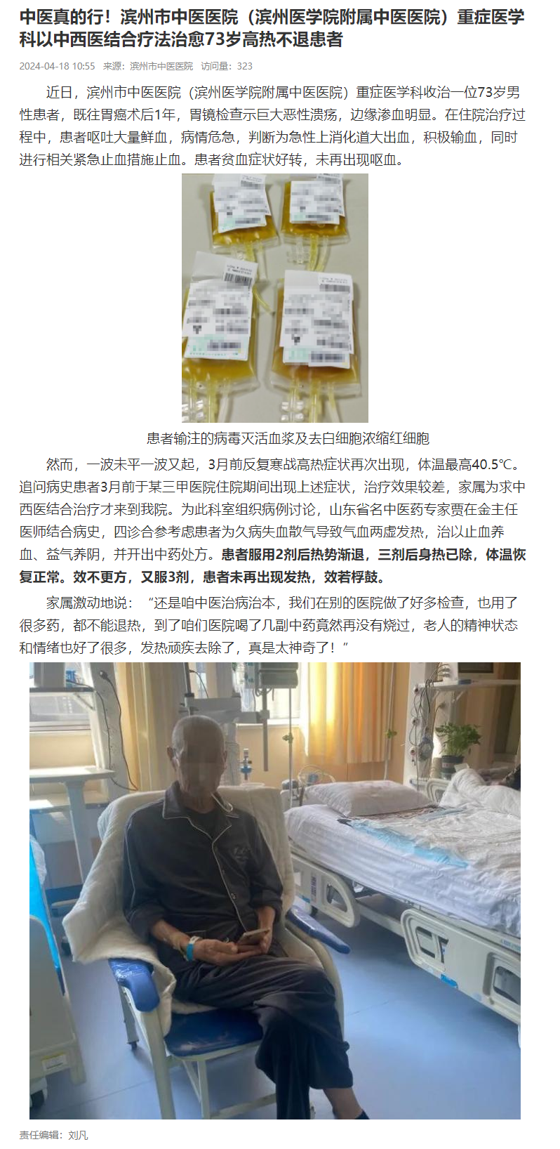 【品质滨州】中医真的行!滨州市中医医院(滨州医学院附属中医医院)重症医学科以中西医结合疗法治愈73岁高热不退患者