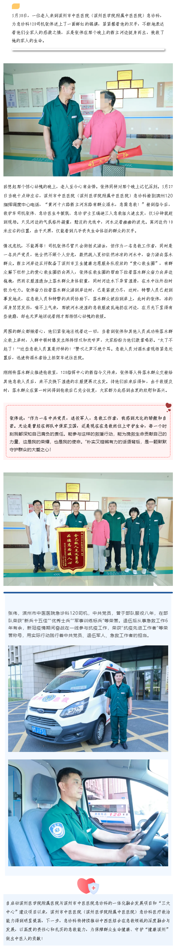 锦旗故事 | 滨州市中医医院急诊科张伟勇救落水群众 见义勇为急救先锋