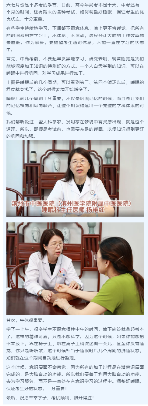 高考、中考在即 睡眠医学科专家送上 “迎考锦囊”