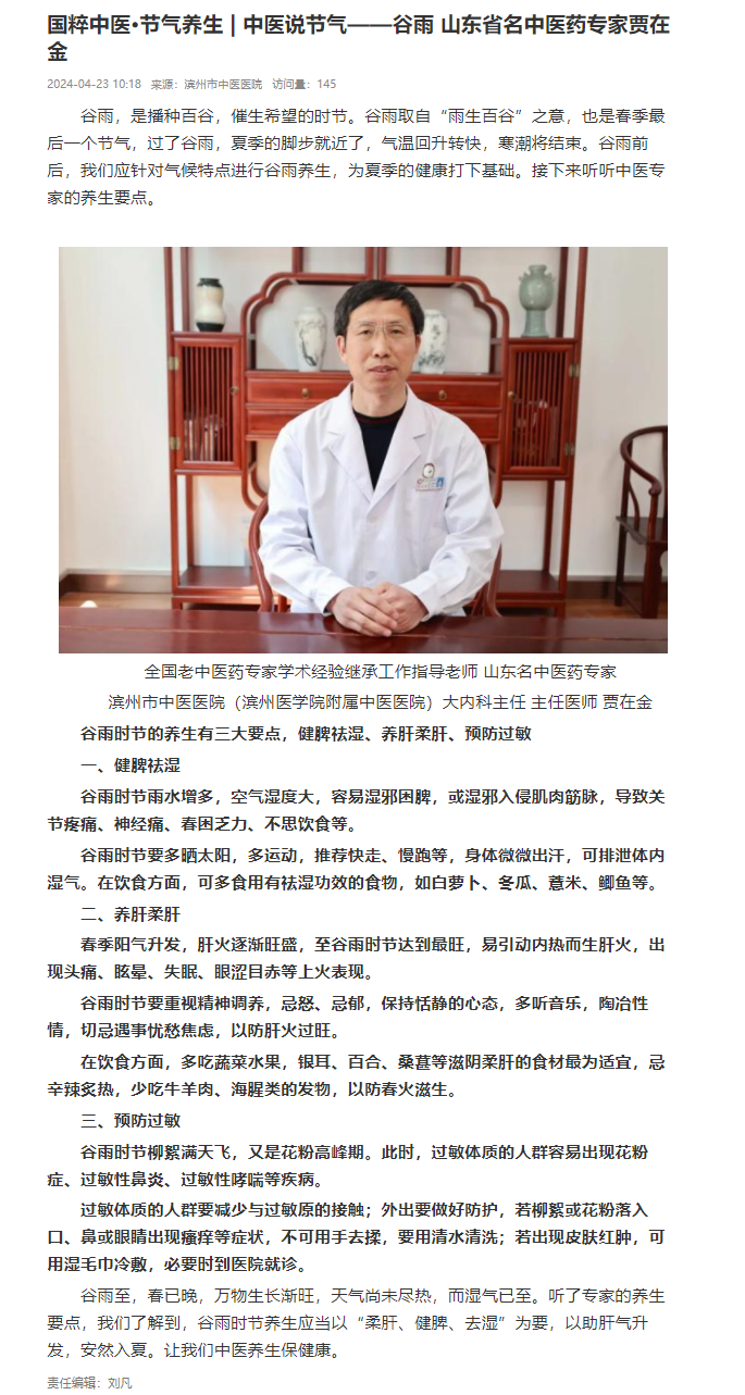【品质滨州】中医说节气——谷雨 山东省名中医药专家贾在金