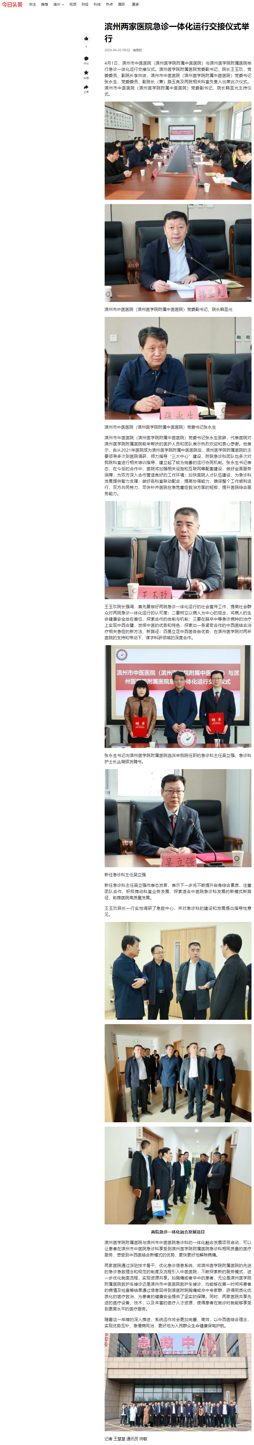 【滨周到头条号】滨州两家医院急诊一体化运行交接仪式举行