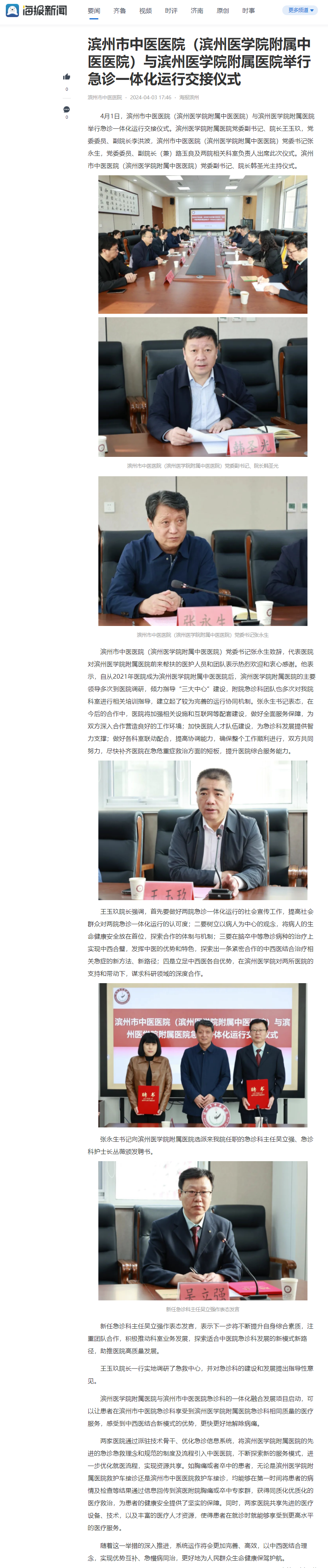 【大众网海报新闻】滨州市中医医院(滨州医学院附属中医医院)与滨州医学院附属医院举行急诊一体化运行交接仪式