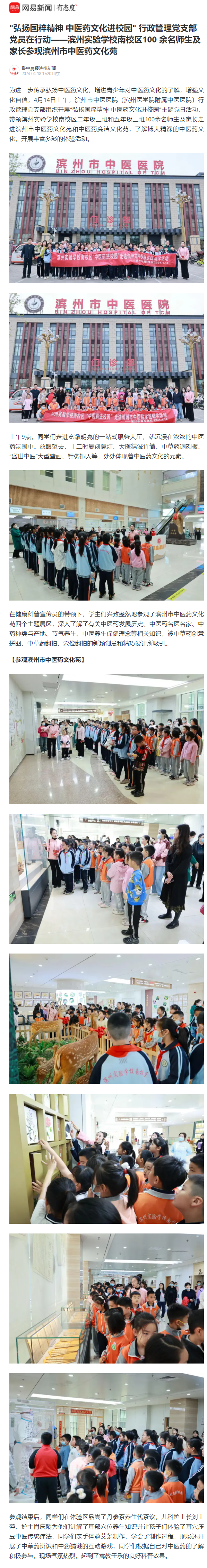 【鲁中晨报滨州新闻】"弘扬国粹精神 中医药文化进校园" 行政管理党支部党员在行动——滨州实验学校南校区100 余名师生及家长参观滨州市中医药文化苑