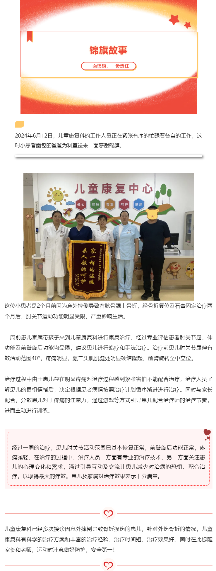 锦旗故事 | 融爱于医 寓康于乐——儿童康复科收到感谢锦旗
