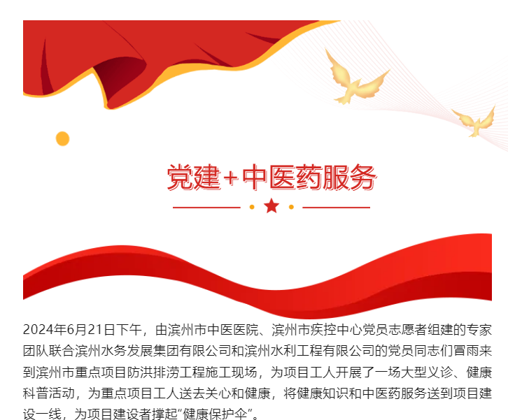 党旗飘扬 健康护航丨滨州市中医医院助力全市重点项目建设党员义诊健康科普并启用“健康小屋”