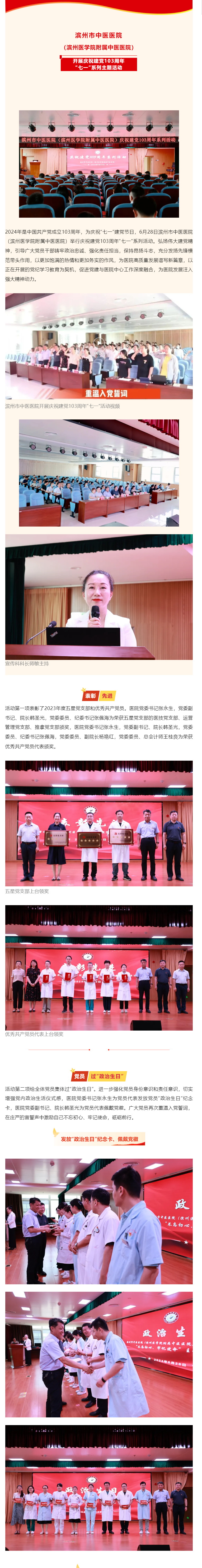 滨州市中医医院(滨州医学院附属中医医院)开展庆祝建党103周年“七一”系列主题活动