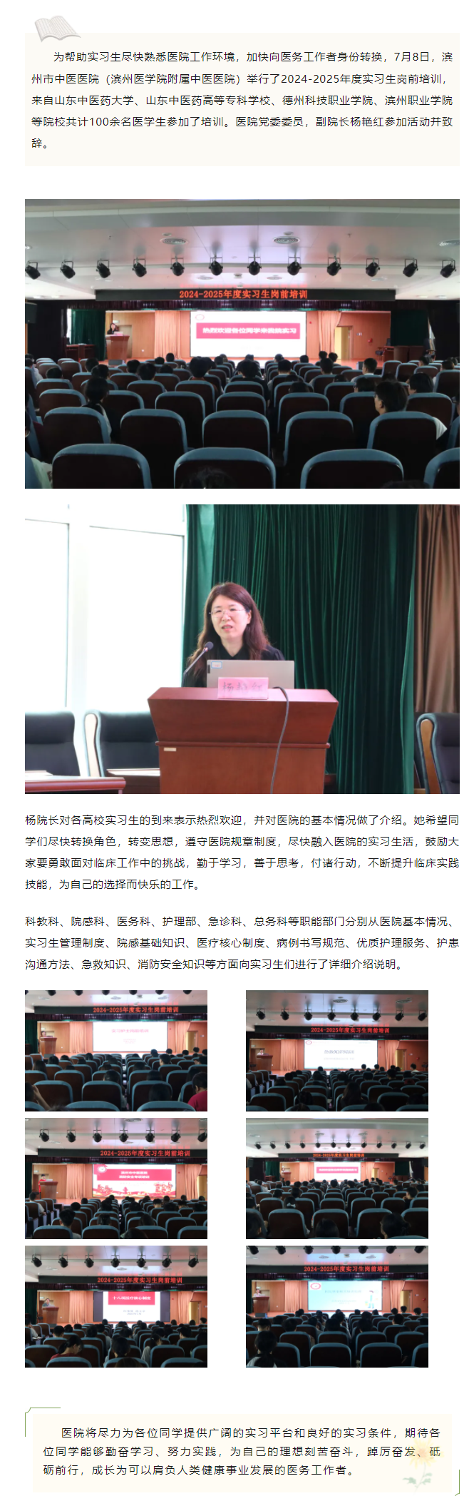 滨州市中医医院(滨州医学院附属中医医院) 顺利完成2024-2025年度实习生岗前培训