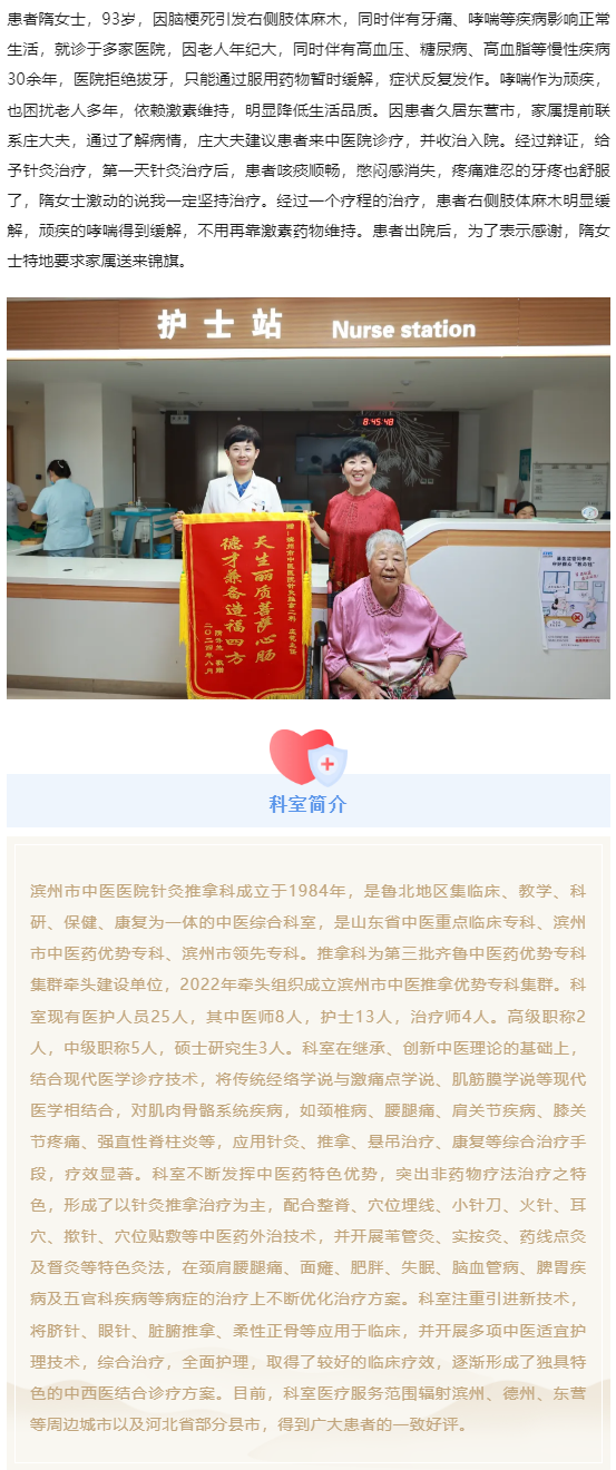 锦旗故事 | 滨州市中医医院(滨州医学院附属中医医院)针灸推拿科收到感谢锦旗