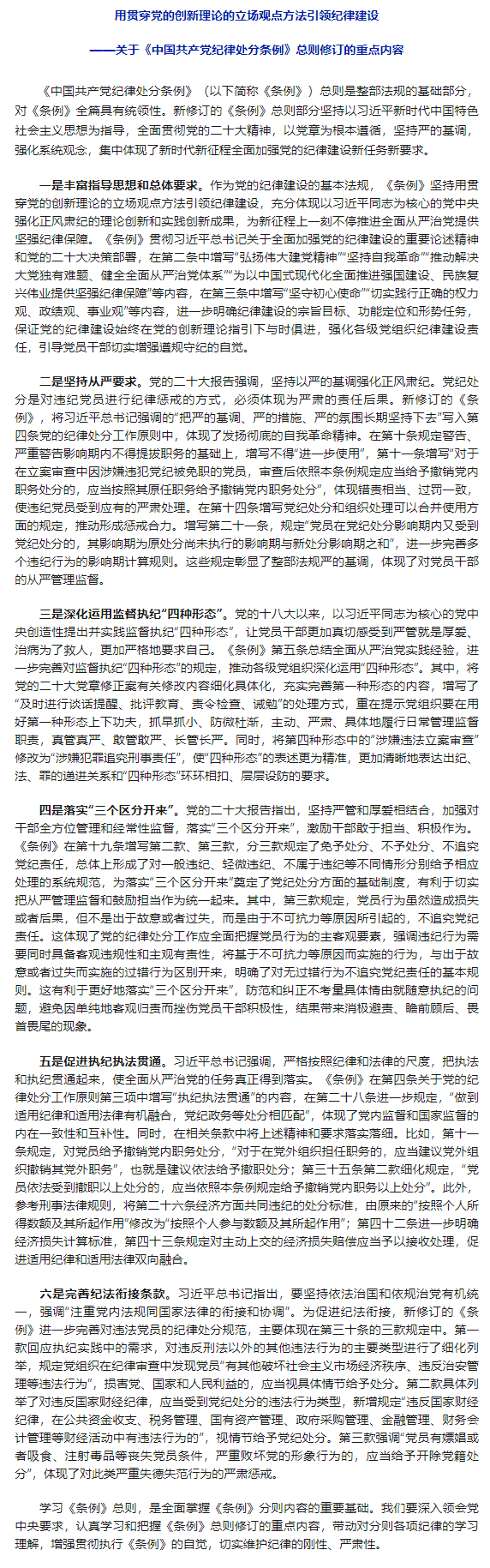 党纪学习教育 · 每日一课29 | 纪律处分条例总则修订的重点内容