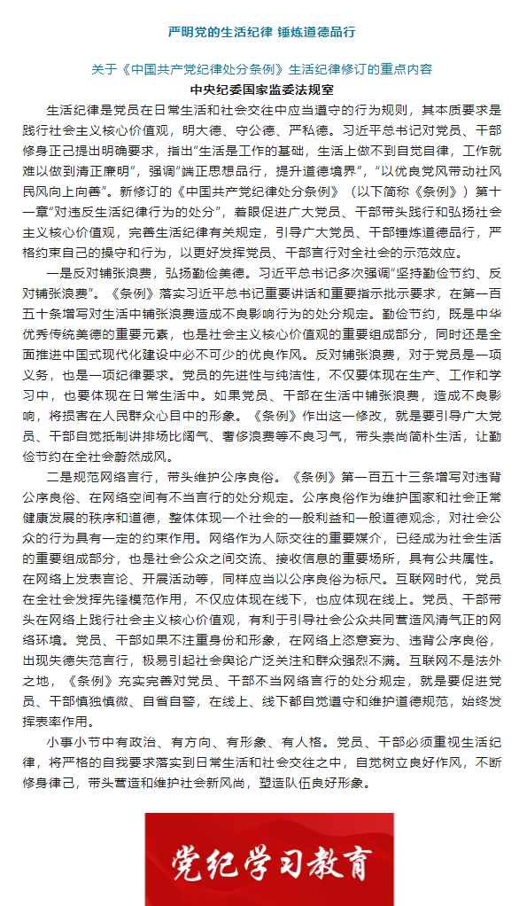党纪学习教育 · 每日一课46| ​严明党的生活纪律 锤炼道德品行