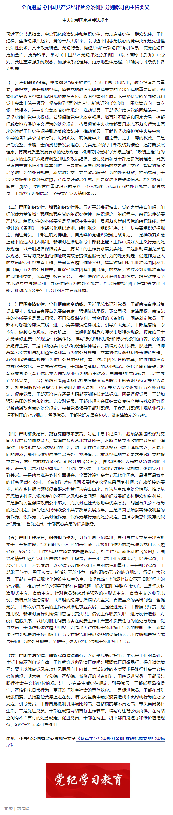 党纪学习教育 · 每日一课51| 全面把握《中国共产党纪律处分条例》分则修订的主旨要义