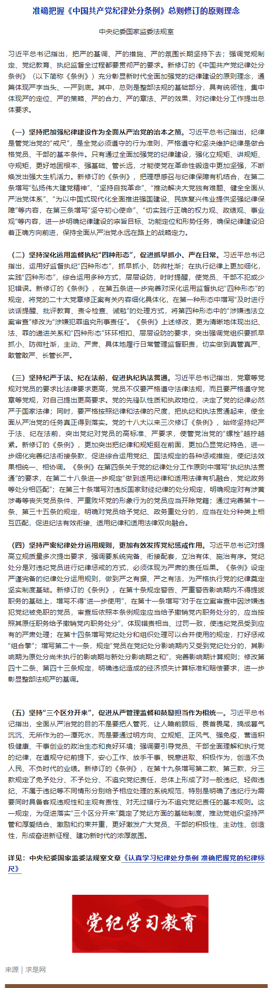 党纪学习教育 · 每日一课53| 准确把握《中国共产党纪律处分条例》总则修订的原则理念