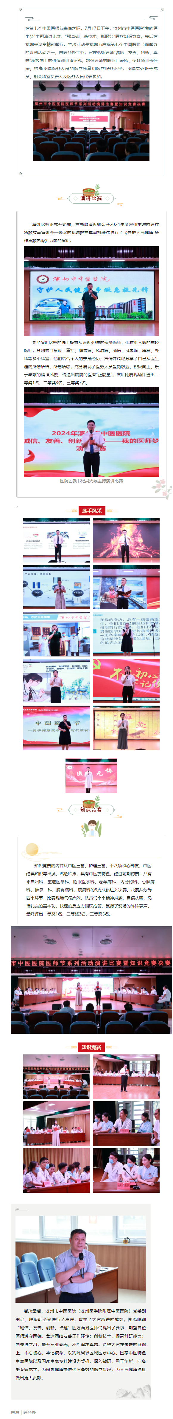滨州市中医医院(滨州医学院附属中医医院)成功举办“我的医生梦”主题演讲比赛暨“强基础、练技术、抓服务”医疗知识竞赛