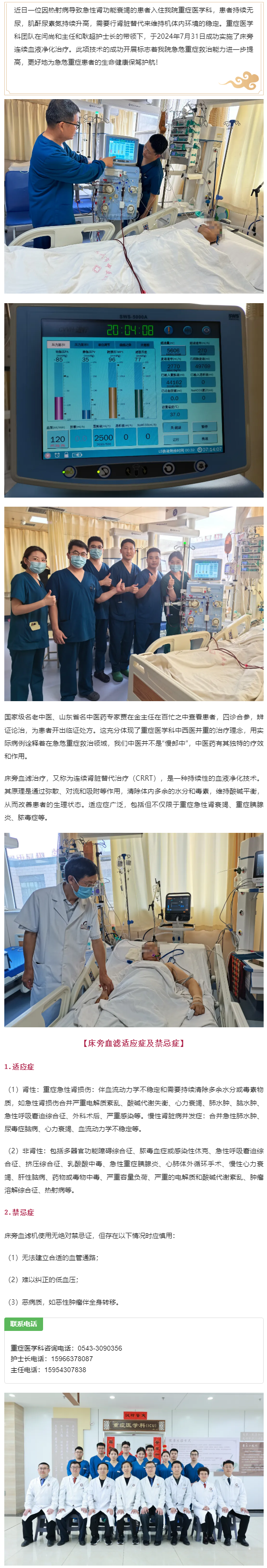 重症医学科成功开展床旁血滤,中西医并重,为患者生命健康保驾护航