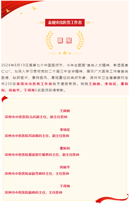 喜报 | 我院5名医师荣获2024年表现突出医务工作者