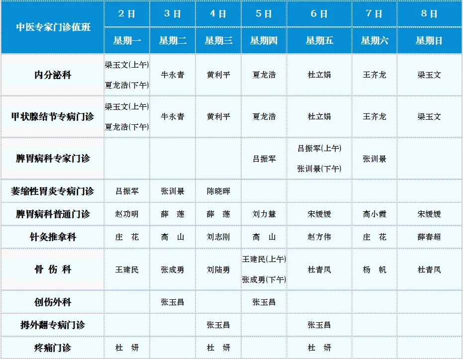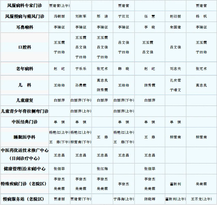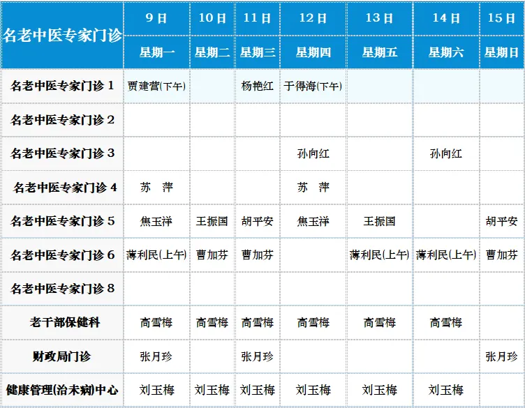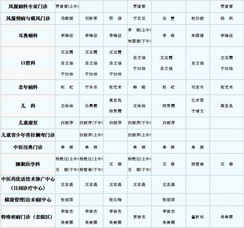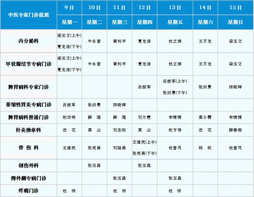 滨州市中医医院(滨州医学院附属中医医院)2024年9月2日-9月15日门诊值班表
