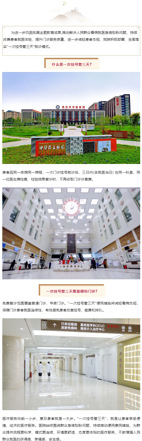 医疗服务提质增效 | 滨州市中医医院全面落实“一次挂号管三天”惠民服务