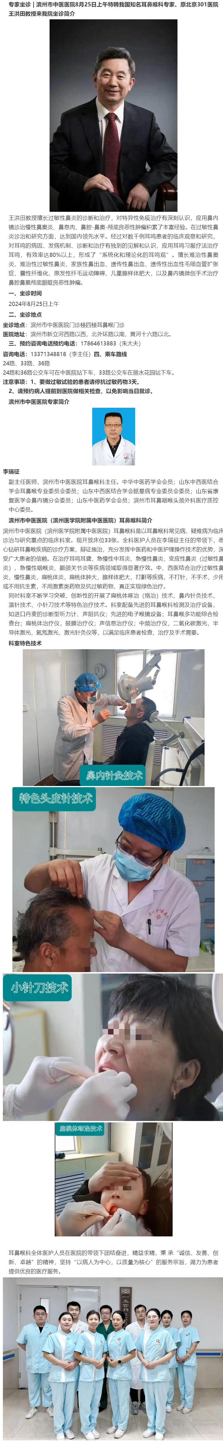 【品质滨州】专家坐诊 | 滨州市中医医院8月25日上午特聘我国知名耳鼻喉科专家、原北京301医院王洪田教授来我院坐诊