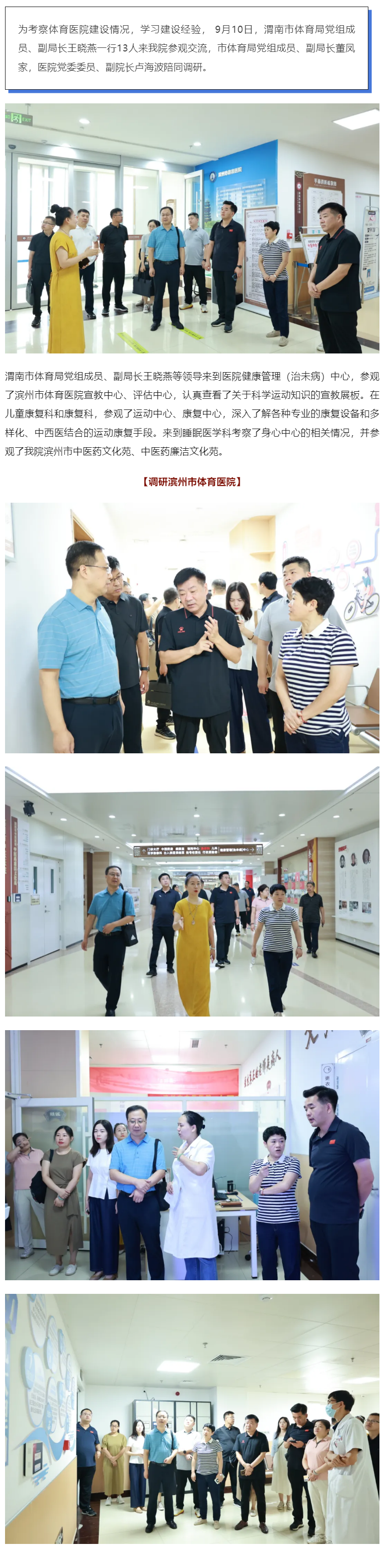 渭南市体育局党组成员、副局长王晓燕一行来我院参观交流