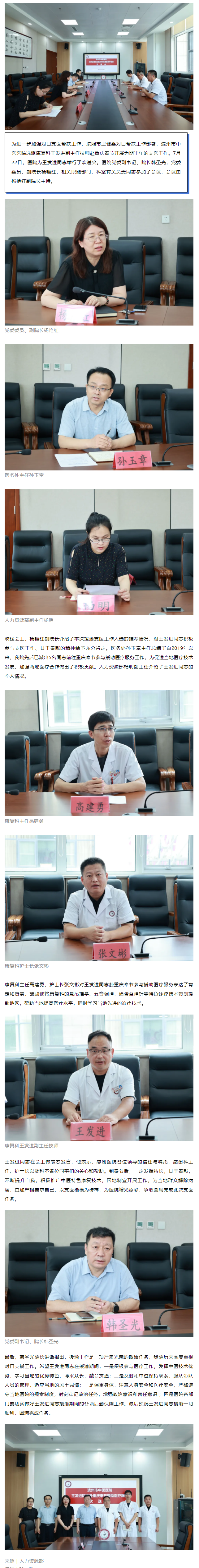 滨州市中医医院(滨州医学院附属中医医院)举行王发进副主任技师赴重庆奉节援助医疗服务欢送会