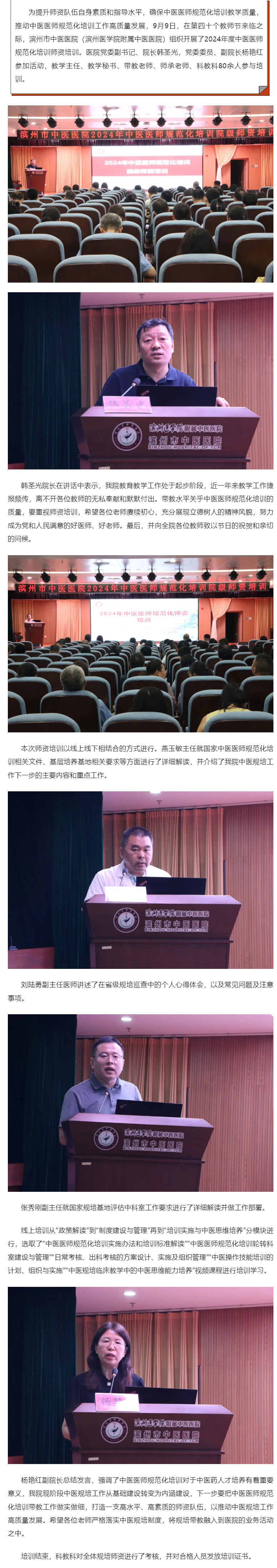 师道匠心,同行致远 | 滨州市中医医院(滨州医学院附属中医医院)组织开展中医医师规范化培训院级师资培训