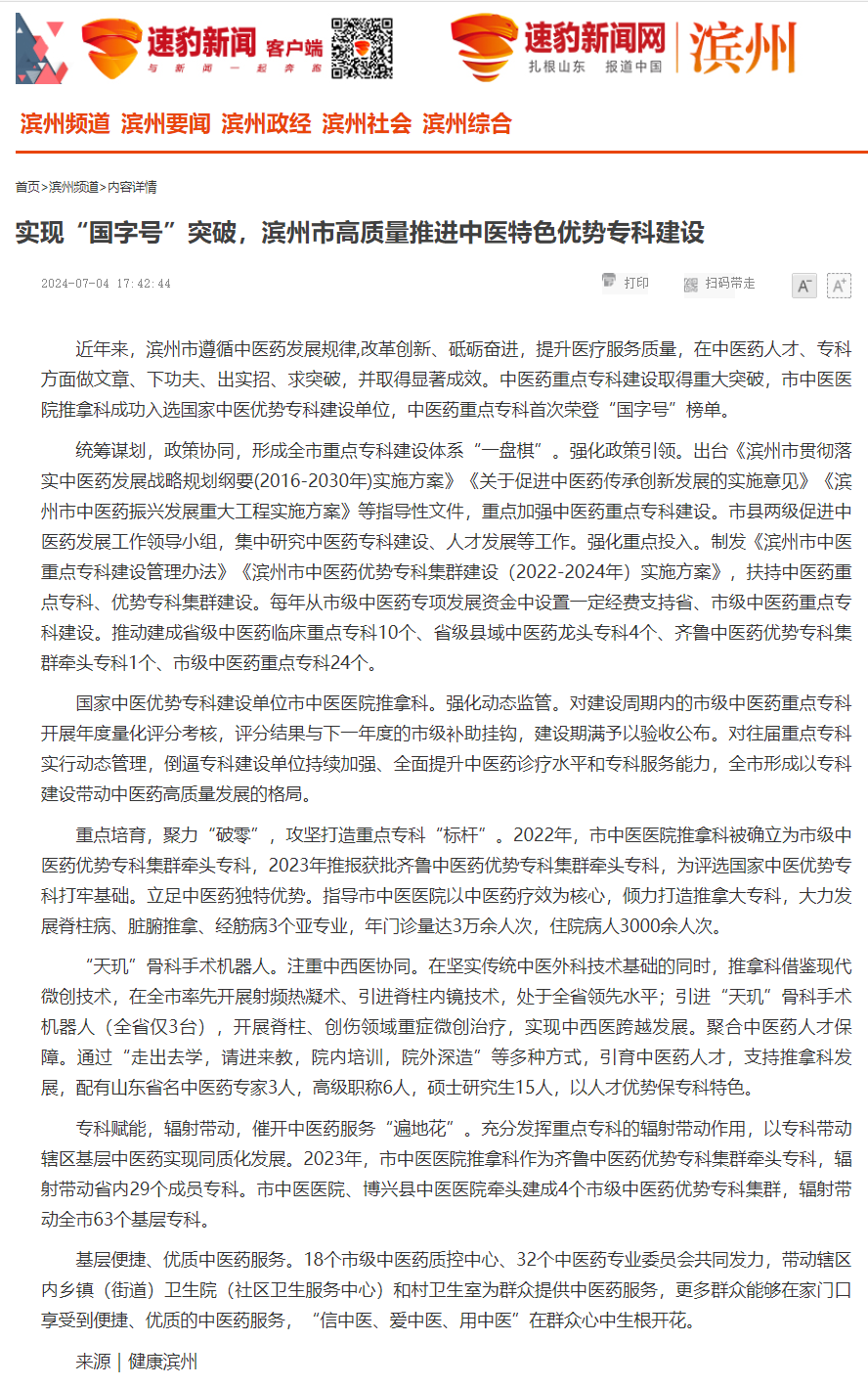 【速豹新闻】实现“国字号”突破,滨州市高质量推进中医特色优势专科建设