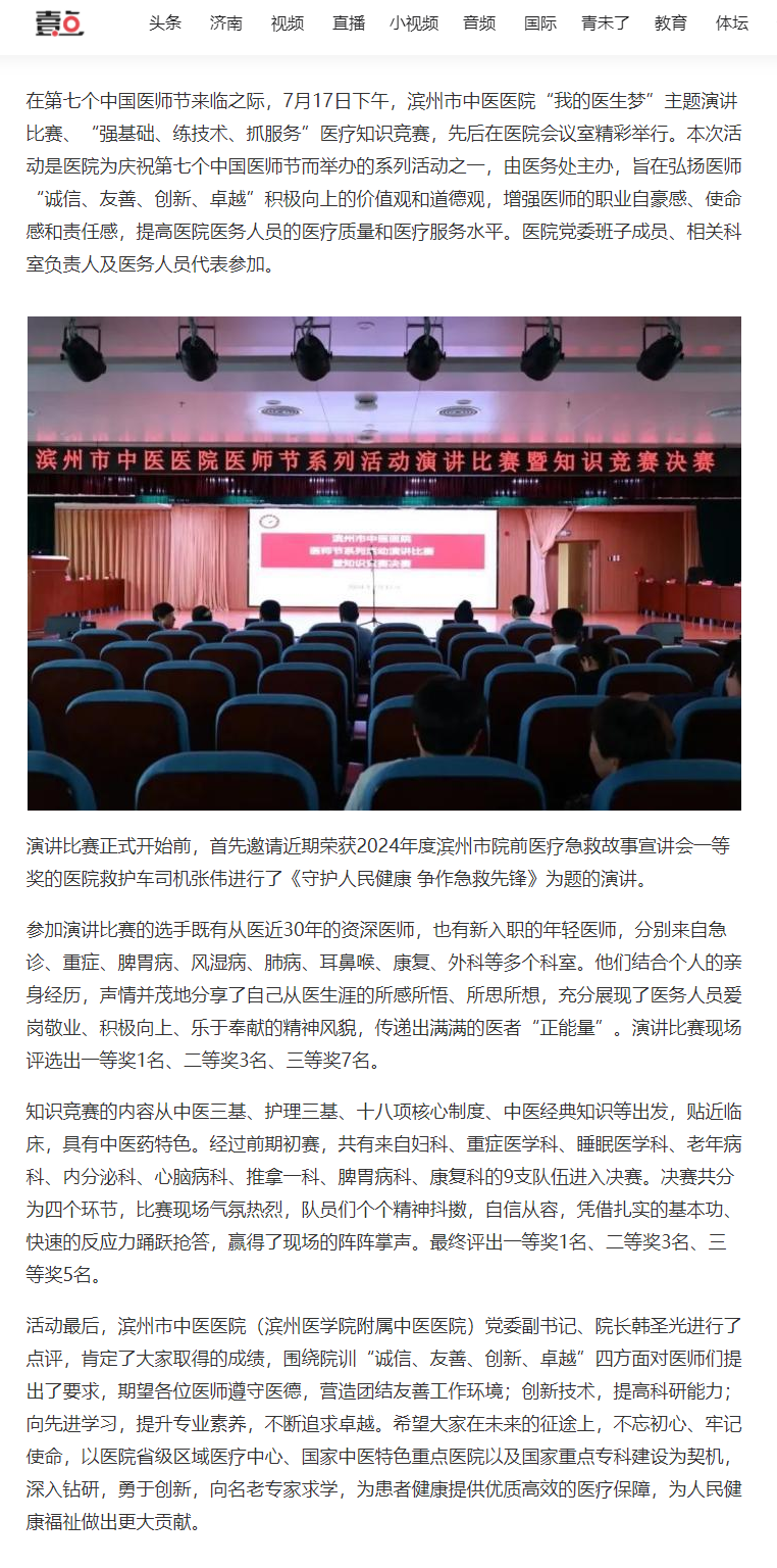 【齐鲁壹点】滨州市中医医院举办“我的医生梦”主题演讲比赛暨医疗知识竞赛