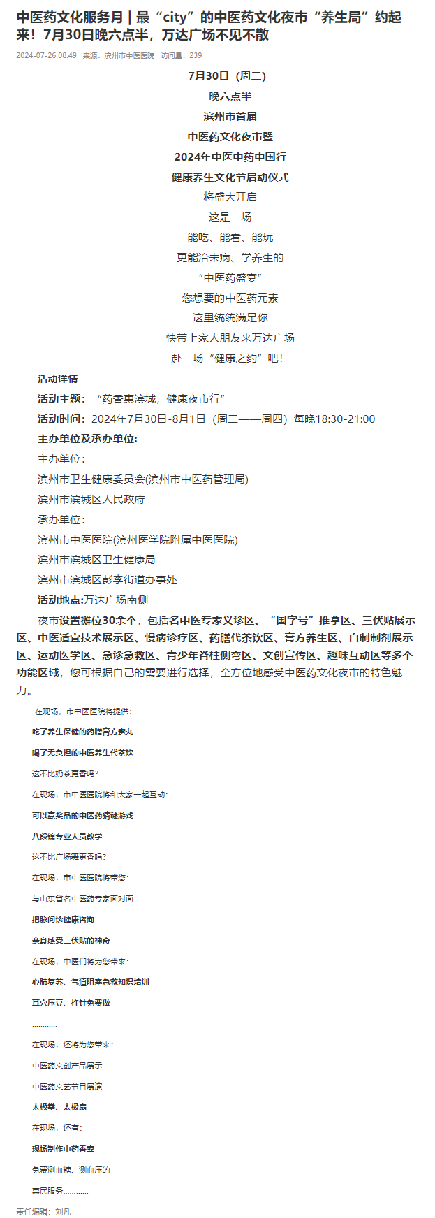 【品质滨州】中医药文化服务月 | 最“city”的中医药文化夜市“养生局”约起来!7月30日晚六点半,万达广场不见不散