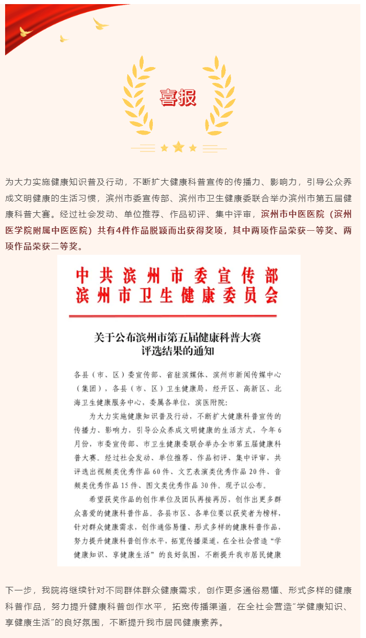 喜报 | 我院在滨州市第五届健康科普大赛荣获佳绩