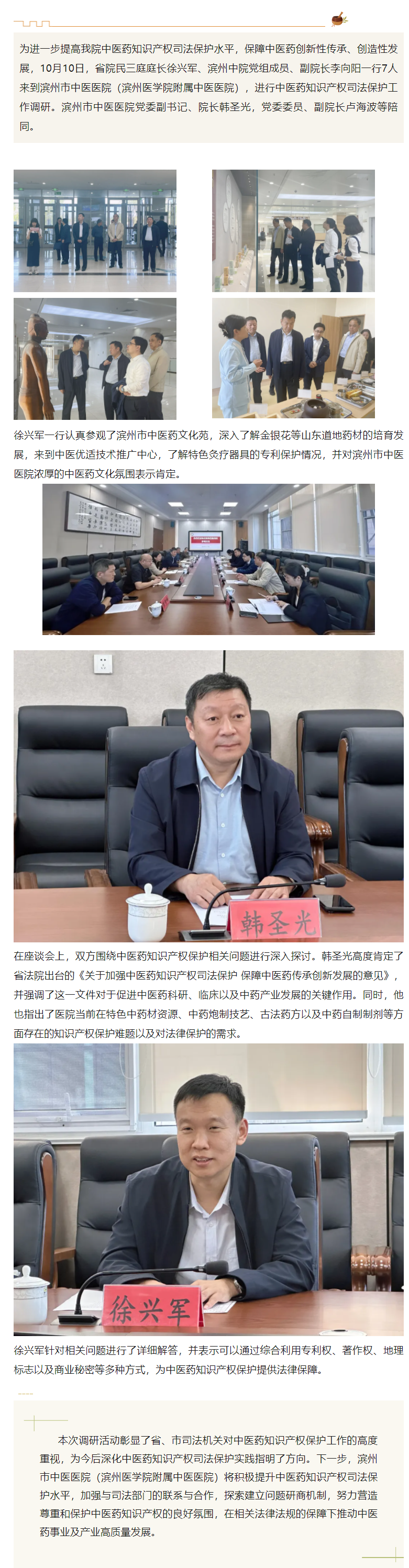省法院来滨州市中医医院(滨州医学院附属中医医院)调研中医药知识产权司法保护工作