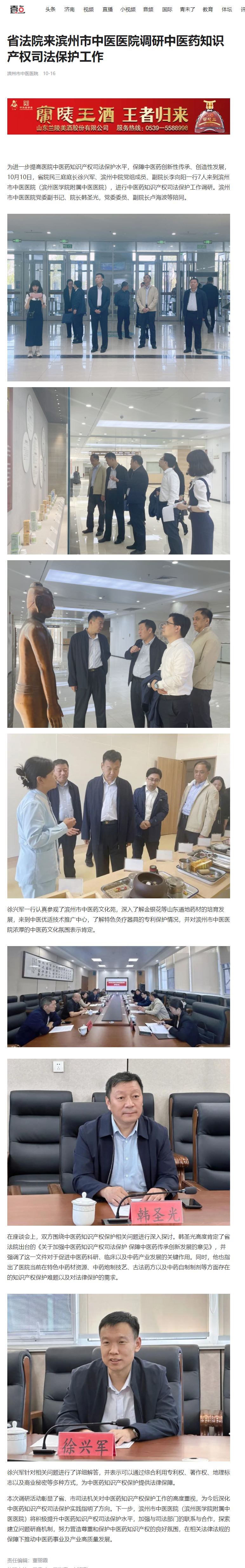 【齐鲁壹点】省法院来滨州市中医医院调研中医药知识产权司法保护工作