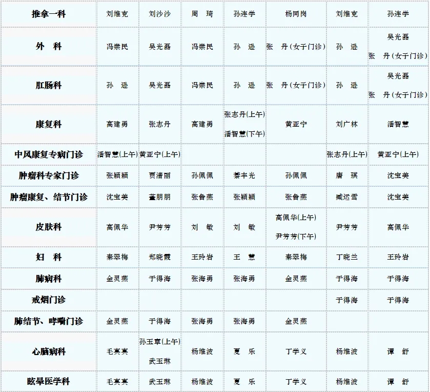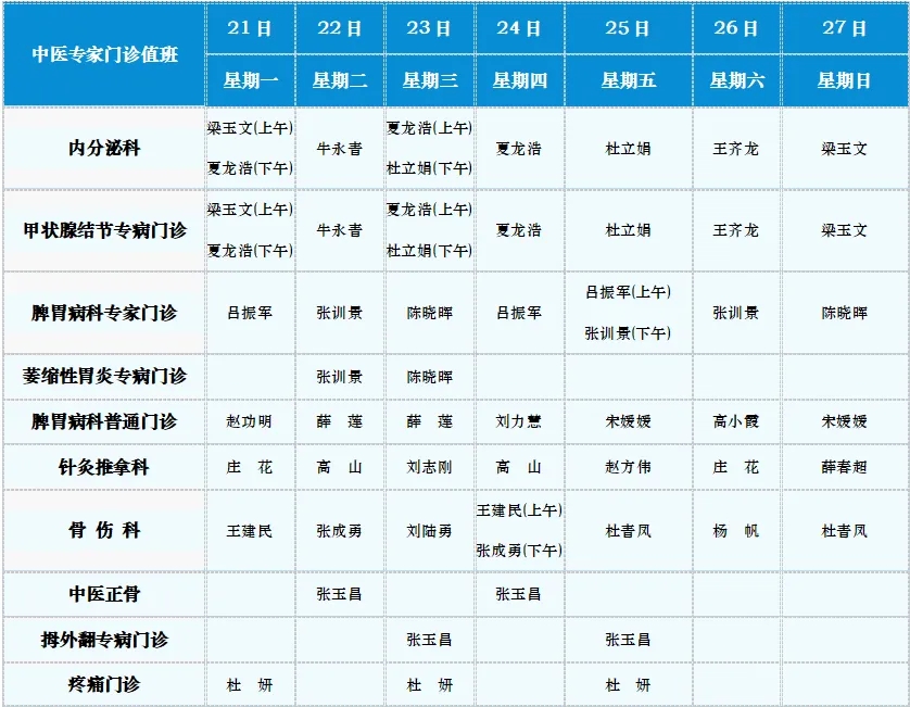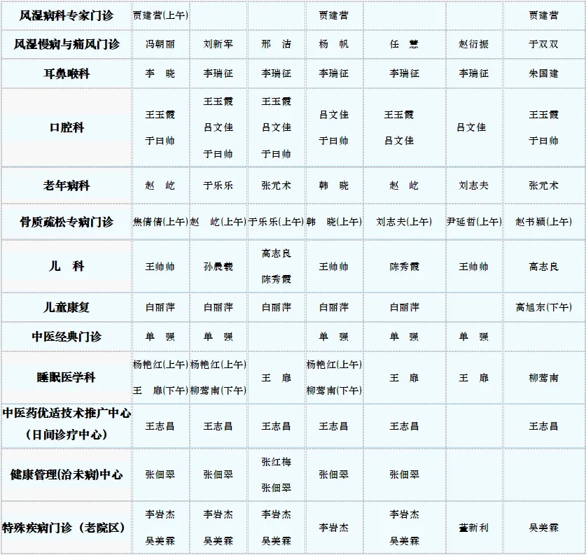 滨州市中医医院(滨州医学院附属中医医院)2024年10月21日-11月3日门诊值班表