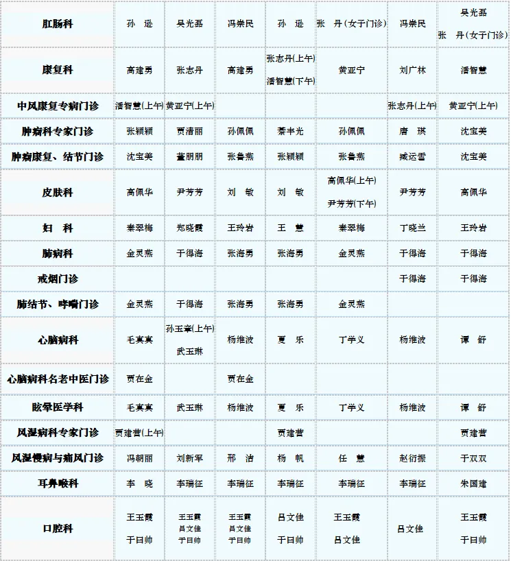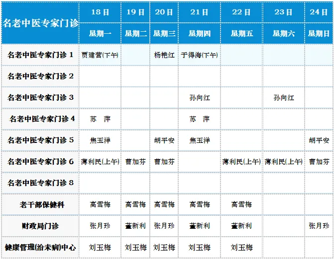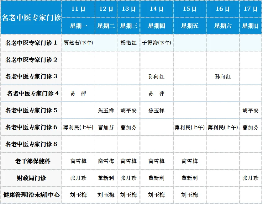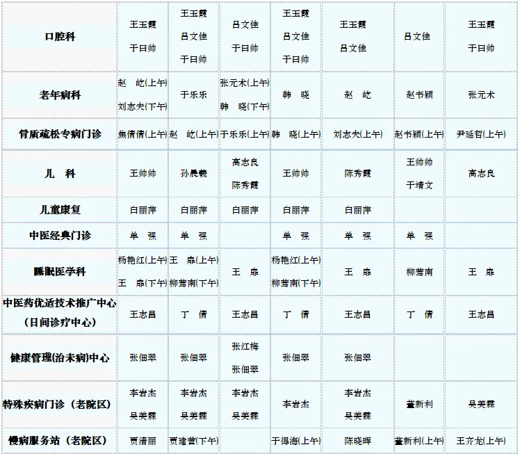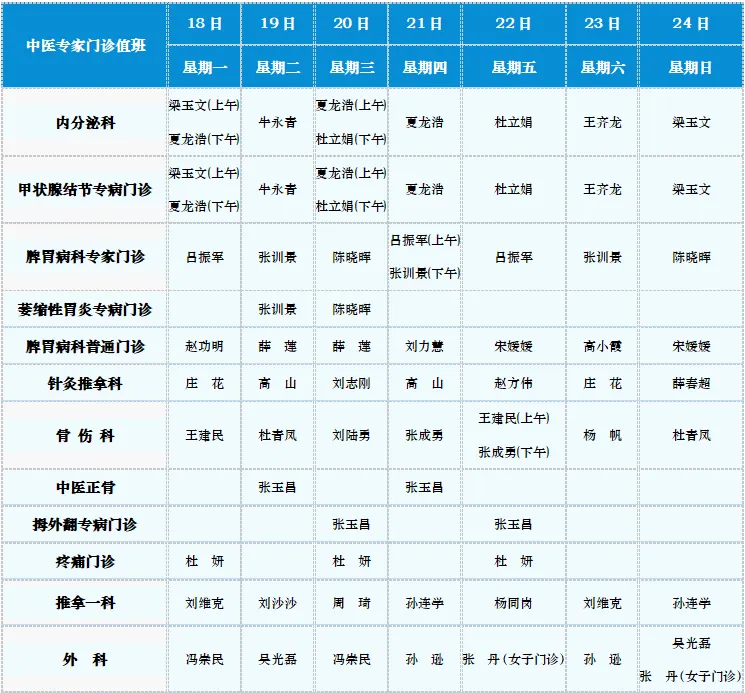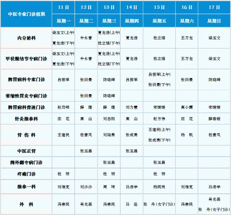 中医专家门诊值班表