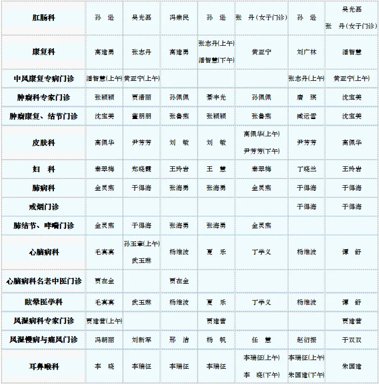专家门诊值班表